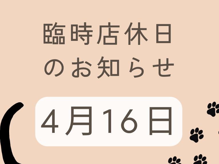 4月の営業日カレンダーには通常営業と書いてありましたが、臨時で4月16日はお休みさせていただきます。急なお知らせで申し訳ございませんが、よろしくお願いいたします。